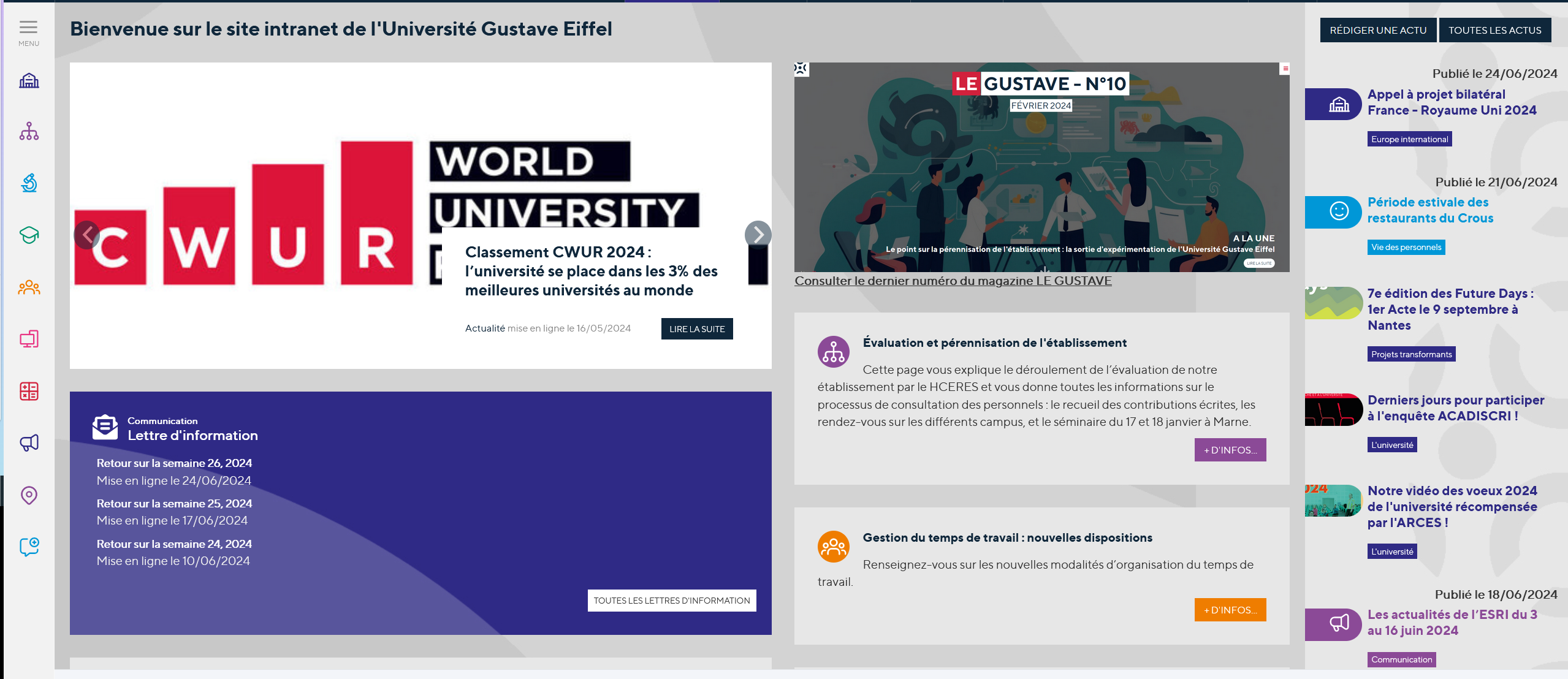 L'intranet des personnels est votre site de référence pour vous informer sur les actualités de l'Université, pour trouver vos collègues via l'annuaire ou encore vos applications et outils du quotidien.